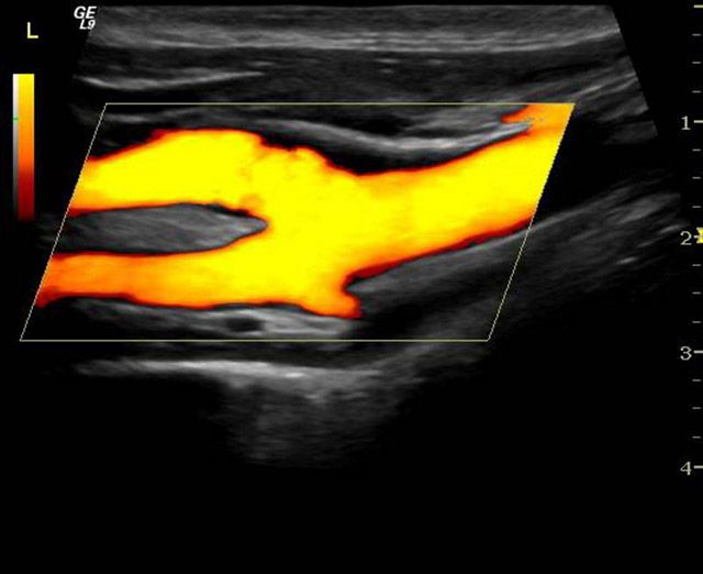 Το υπερηχογράφημα duplex έγχρωμης ροής ή αλλιώς το triplex συνδυάζει τις πληροφορίες της συμβατικής υπερηχογραφικής απεικόνισης ενός αγγείου και τις πληροφορίες εξέτασης της ροής στο αγγείο με Doppler. Επίσης, με την εξέταση αυτή ο ιατρός βλέπει πώς ρέει το αίμα στο αγγείο και μετρά την ταχύτητα ροής. Έτσι, μπορεί να ελέγξει την πορεία του αγγείου, να υπολογίσει το μέγεθός του και το βαθμό στένωσής του, αν υπάρχει.