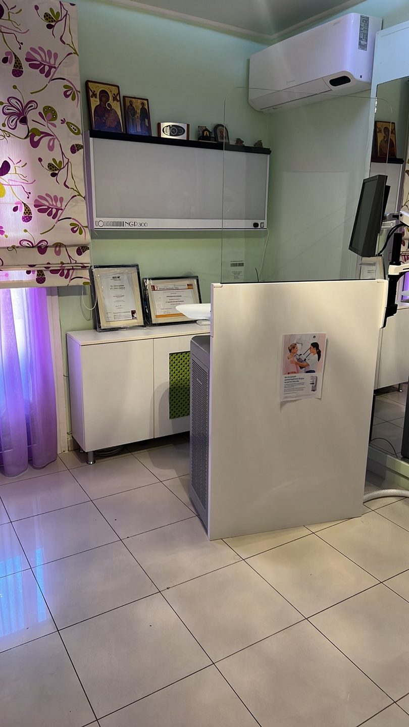 Αυτό το νέο, ελκυστικό σύστημα μαστογραφίας καλλιεργεί μια αίσθηση ηρεμίας, με διακριτικό φωτισμό και απαλά, στρογγυλεμένα σχήματα.